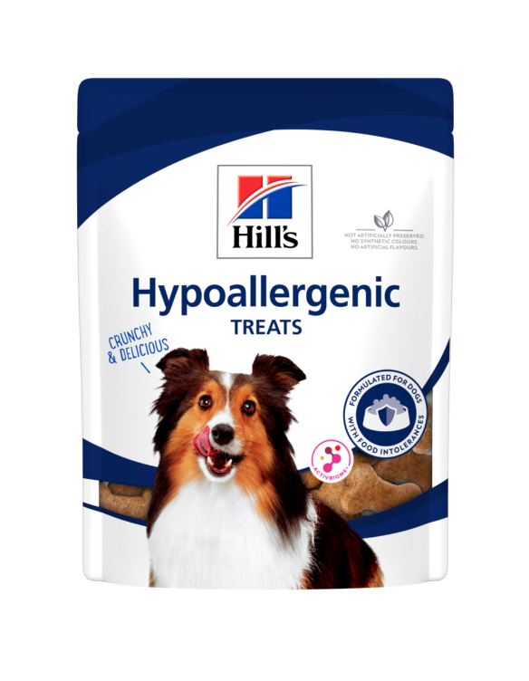 Hill's Hypoallergenic Dog Treats are great for dogs being fed Hill's Prescription Diet d/d, z/d, i/d, i/d Sensitive and Derm complete Dog Foods or Hill's Science Plan Hypoallergenic and Sensitive Stomach & Skin Dog Foods.